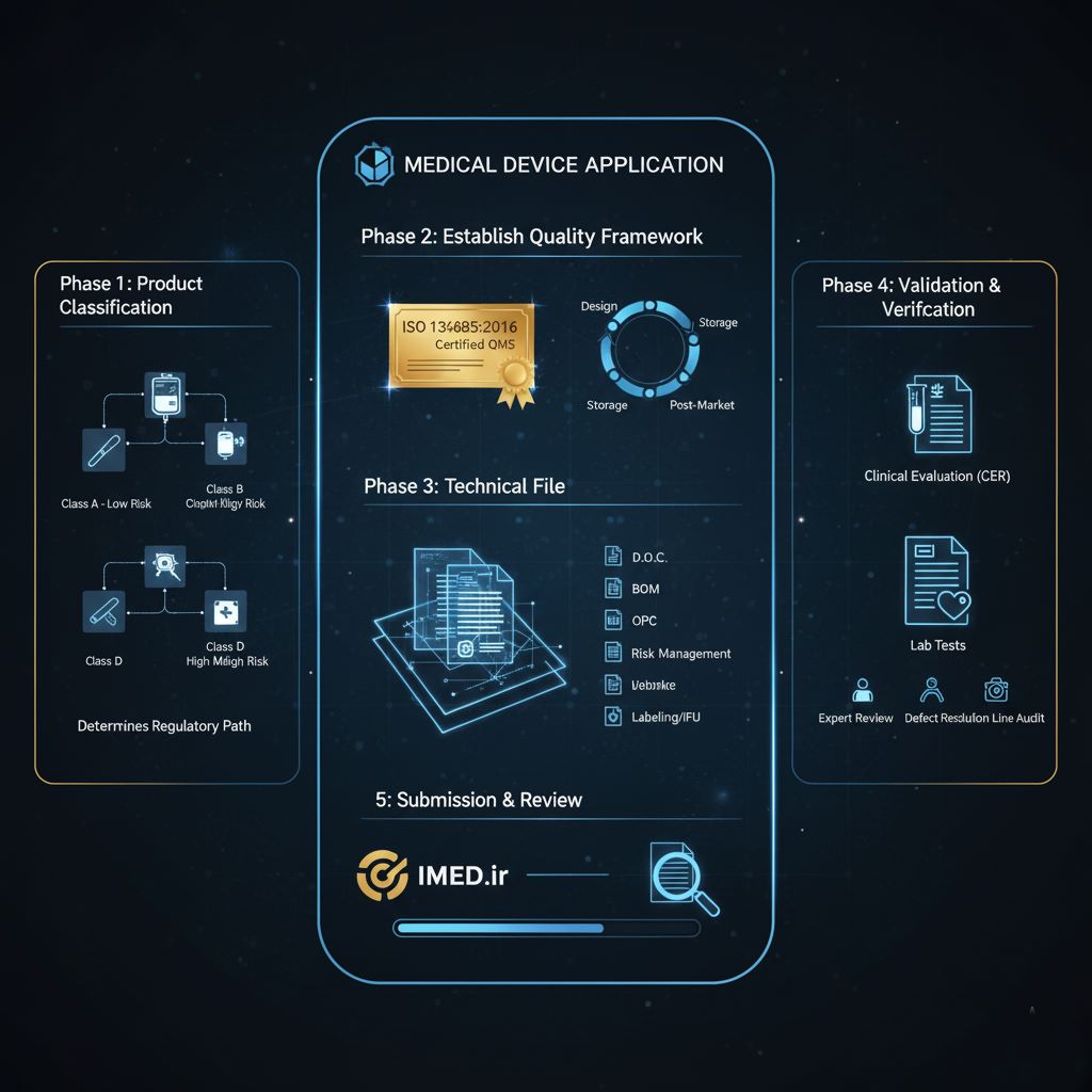 - پیامدهای طبقهبندی: کلاس خطر، نقشه راه شما را تعیین میکند. این طبقهبندی، سطح سختگیری نظارتی، عمق مستندات مورد نیاز، و الزامات مربوط به آزمونها و ارزیابیهای بالینی را مشخص مینماید. الزامات برای کلاسهای C و D به مراتب سنگینتر از کلاس A است و اشتباه در تعیین کلاس خطر میتواند منجر به رد کامل درخواست شود.