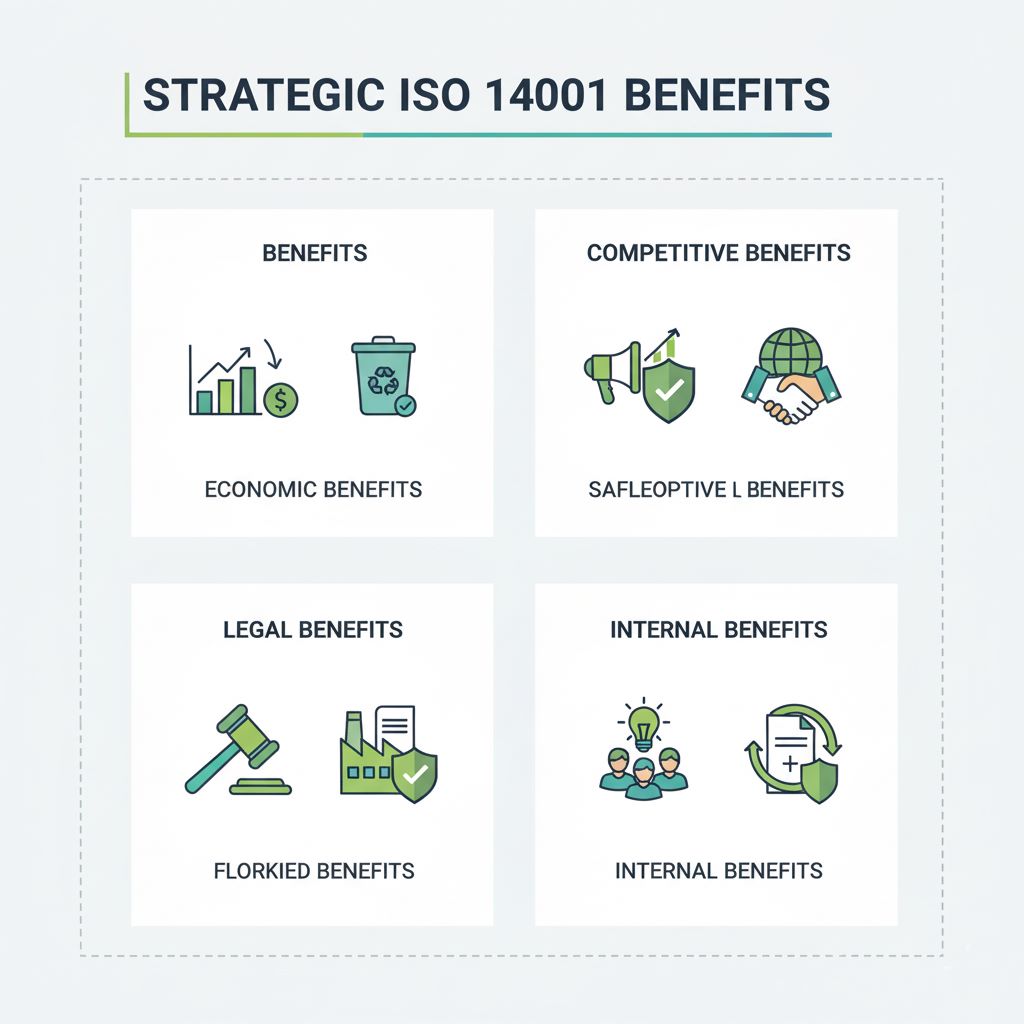 مزایای اخذ این گواهینامه به چهار دسته اصلی اقتصادی، رقابتی، قانونی و داخلی تقسیم میشود که هر یک به طور مستقیم به پایداری و موفقیت سازمان کمک میکنند.