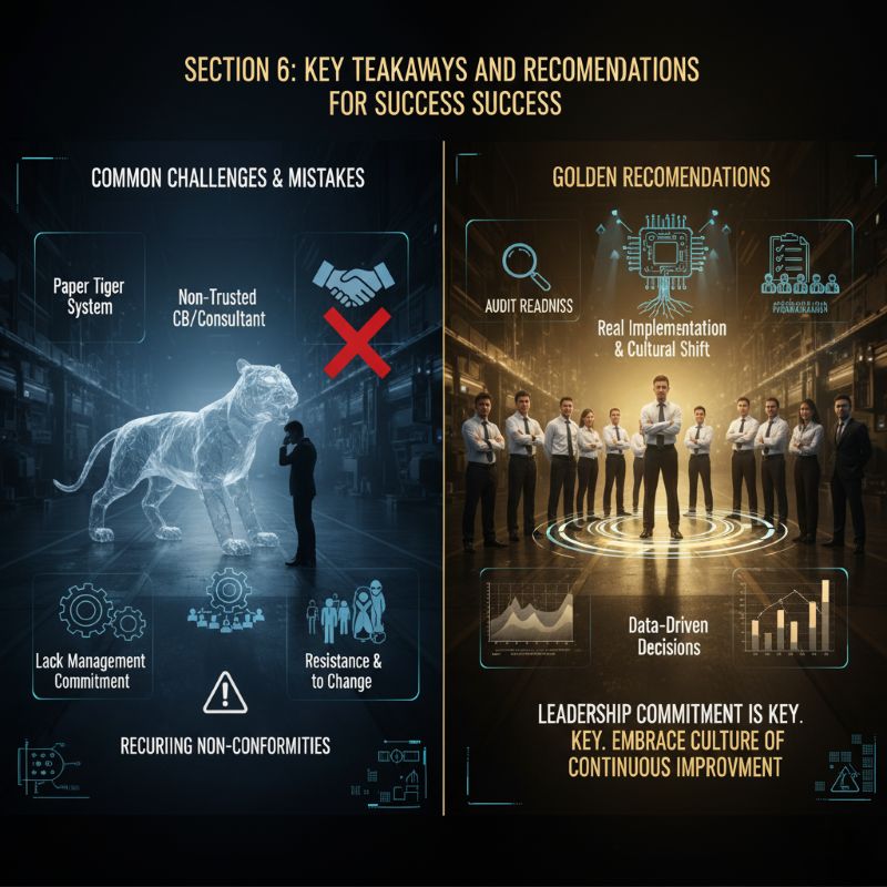 - نادیده گرفتن عدم انطباقهای پرتکرار: گزارشهای جهانی ممیزیها نشان میدهد که برخی از بندهای استاندارد به طور مکرر به عنوان منبع عدم انطباق شناسایی میشوند. حوزههایی مانند طرح کنترل (Control Plan)، طرحهای اقتضایی (Contingency Plans)، نگهداری بهرهور جامع (TPM) و صلاحیت ممیزان داخلی از جمله این موارد هستند. سازمانها باید توجه ویژهای به این حوزهها داشته باشند.